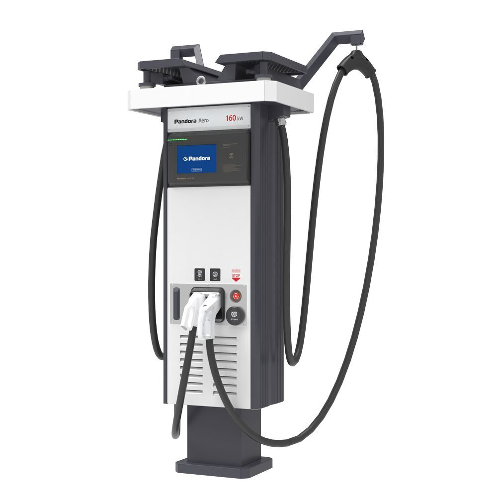 Зарядная станция Pandora Aero 160/22 предназначена для быстрой зарядки электромобилей постоянным и переменным током.
