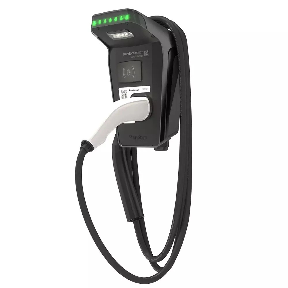 Универсальная зарядная станция Pandora MINI 22 предназначена для зарядки переменным током мощностью до 22кВт всех типов электромобилей и гибридов.